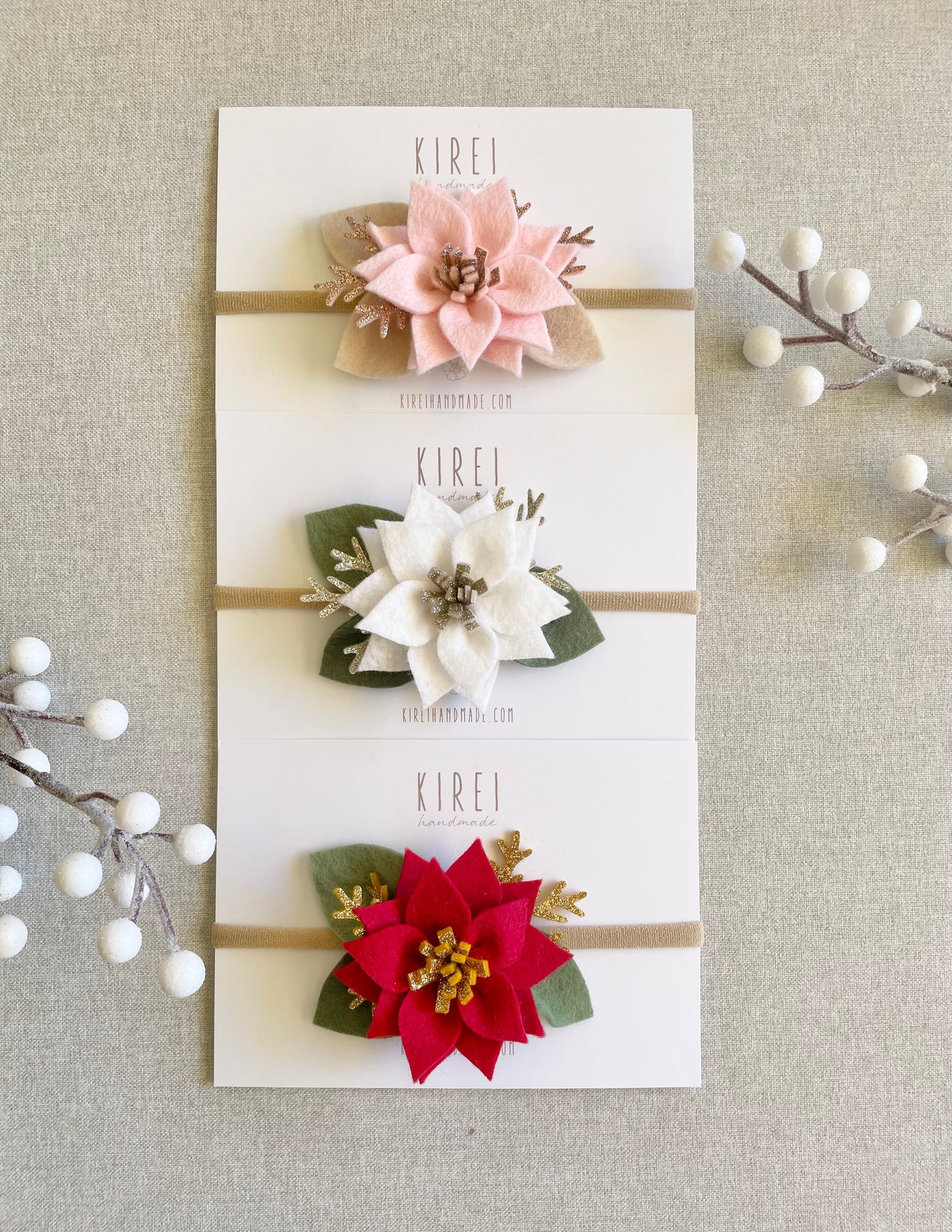 This beautiful Poinsettia headband will be the perfect addition to any outfit.