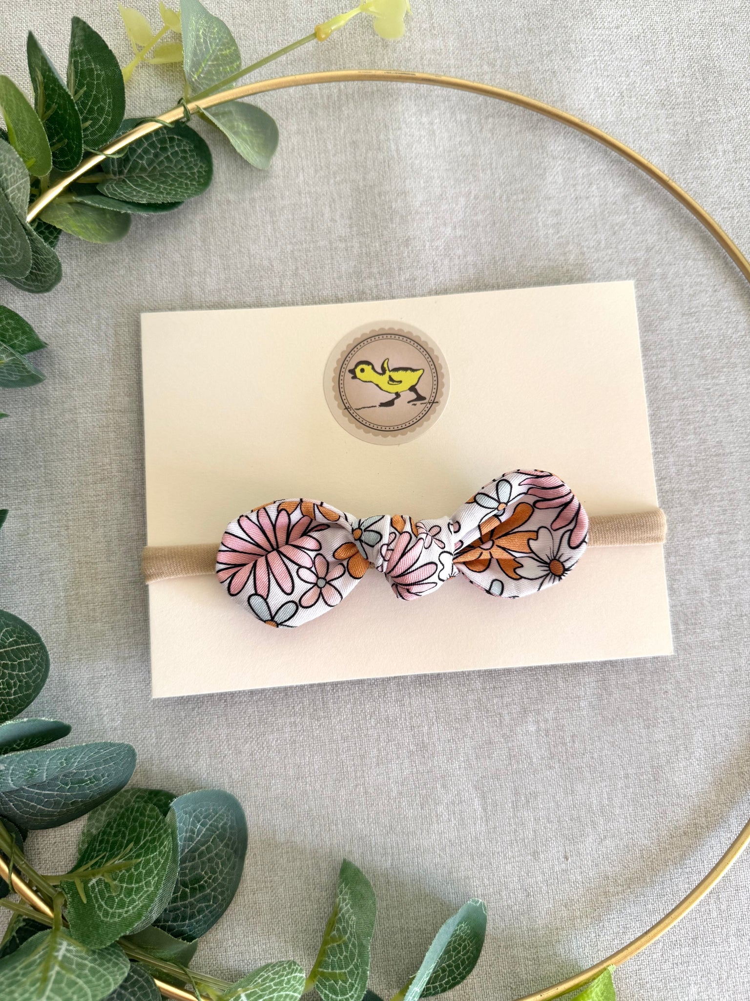 These Little Ducklings headbands are beautifully soft and comfortable. They are made using 100% cotton fabric, which is tied around a soft stretchy nylon band. The headband is small enough to fit a newborn but stretches comfortably to fit an older child.