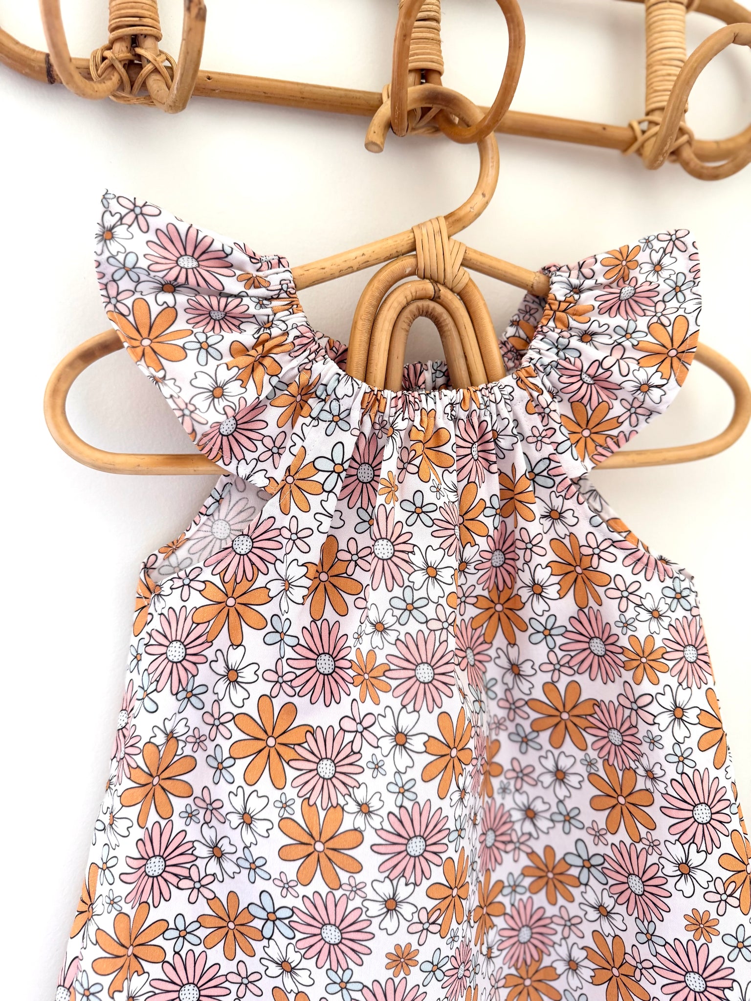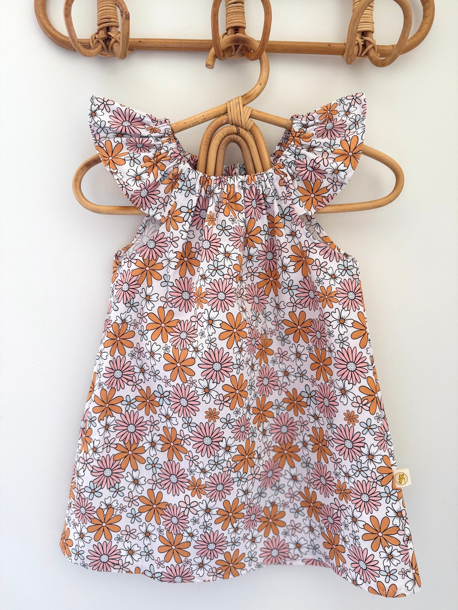 This simple but beautifully made dress is a staple for your little ones wardrobe. It is light and easy to wear throughout the warmer days.