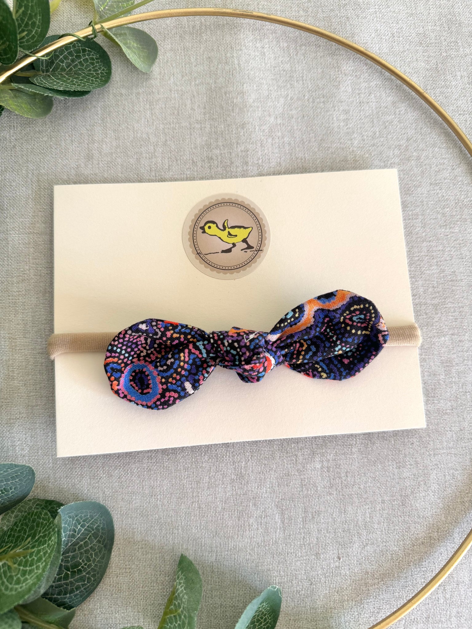 These Little Ducklings headbands are beautifully soft and comfortable. They are made using 100% cotton fabric, which is tied around a soft stretchy nylon band. The headband is small enough to fit a newborn but stretches comfortably to fit an older child.